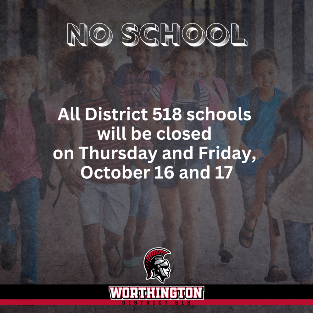 All District 518 schools will be closed on Thursday, October 16 and Friday, October 17
