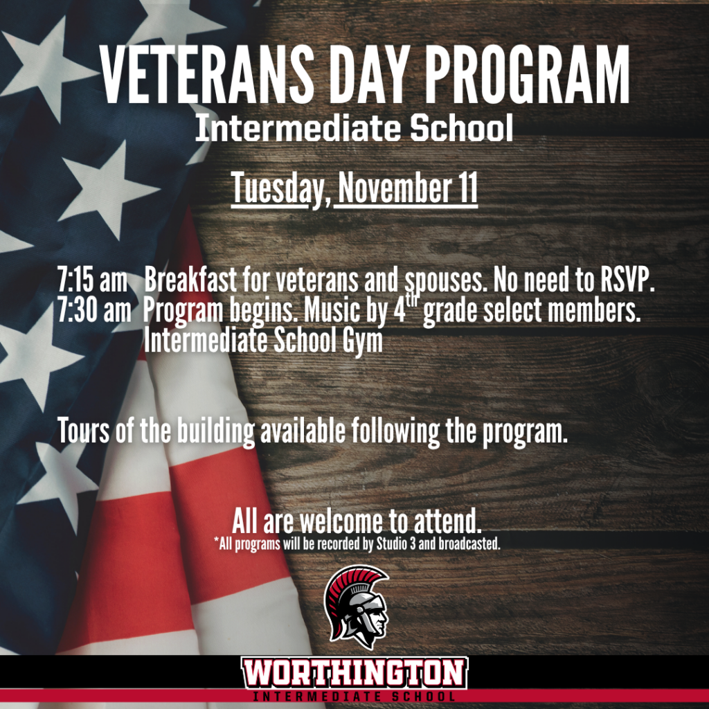 7:15 AM Breakfast for veterans and spouses. No need to RSVP
