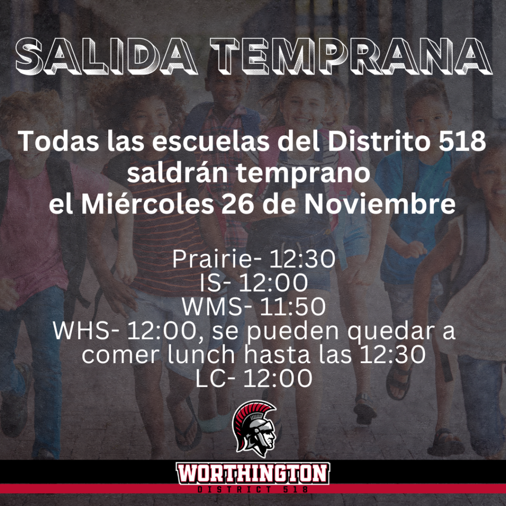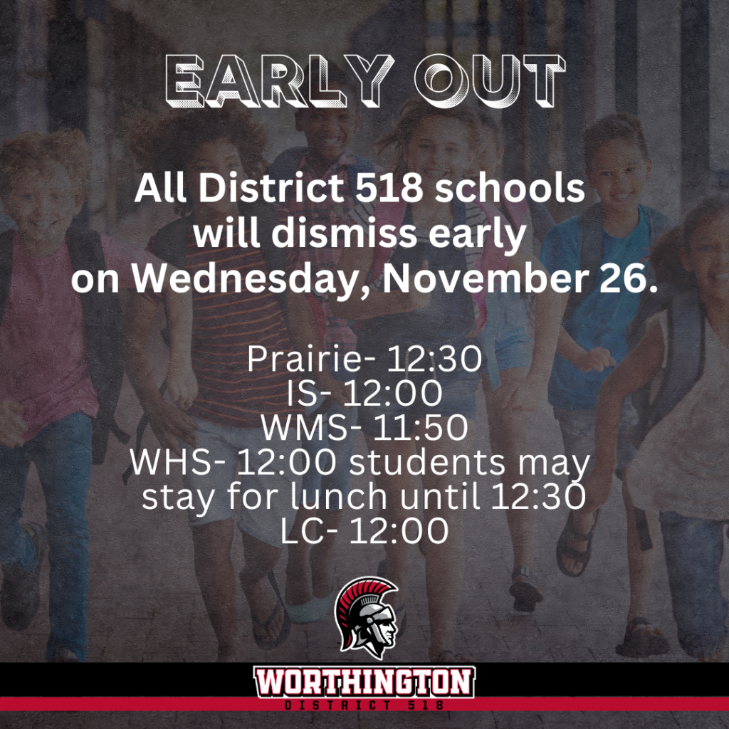 Worthington High School – 12:00 (Students may stay for lunch until 12:30)
