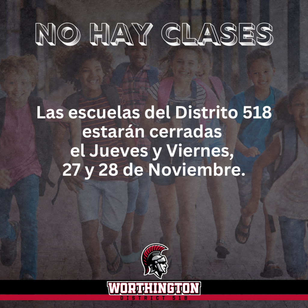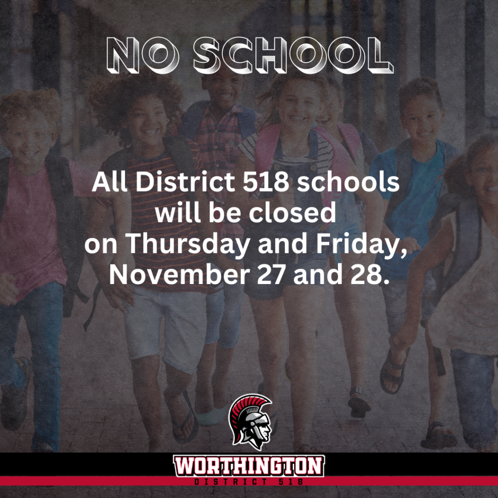 All District 518 schools will be closed on Thursday, November 27 and Friday, November 28