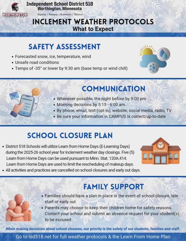 Go to ISD518.net for full weather protocols and Learn from Home Plan.